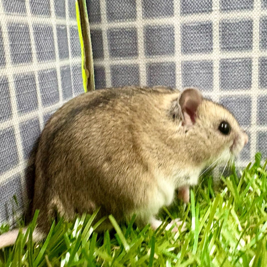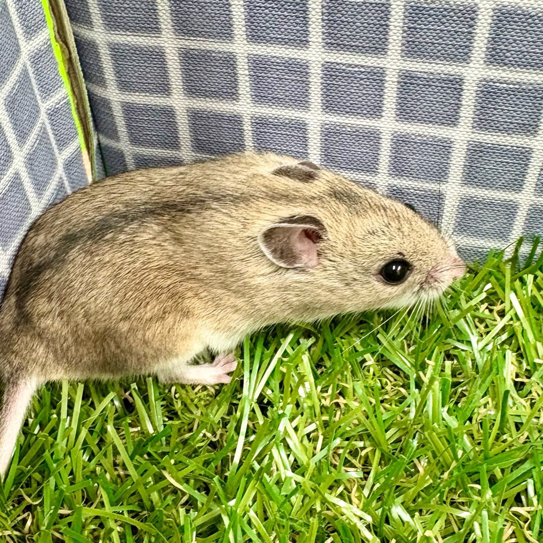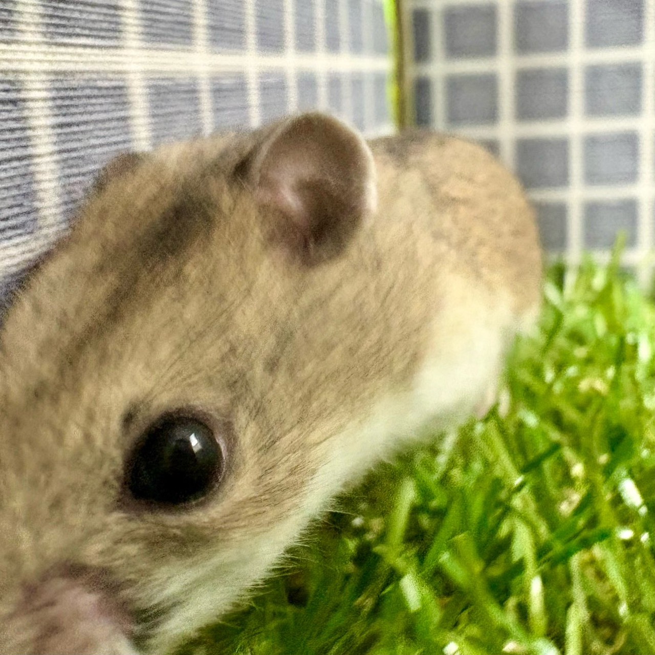 This Chinese hamster has a slender body and distinctive round eyes. 🥺🌷
