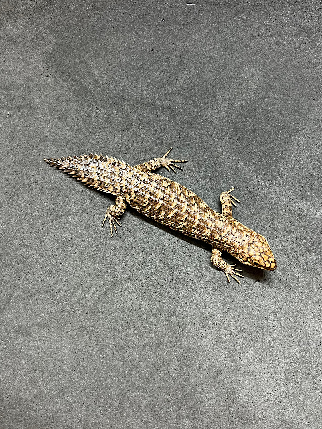 The Walleye Skink is characterized by its intense keel scales (spiky scales) covering its entire body, its low-slung posture, and its streamlined form.