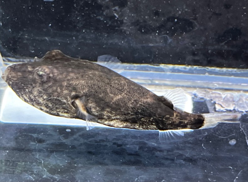 This Tetraodon miurus has a unique body shape and facial expression. Although it is small in size, it has a strong presence and can be kept alone for careful observation