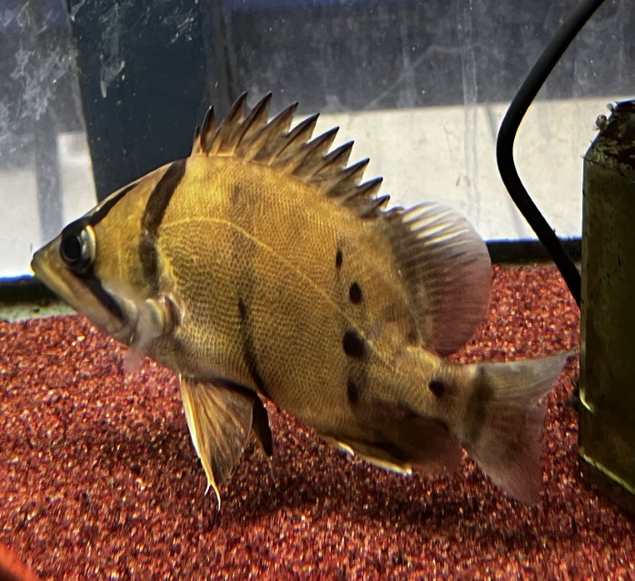 This four-bar tiger has an impressive body shape and a vivid band pattern. It is about 12cm in size and is a spectacular specimen that will make a great presence in the aquarium