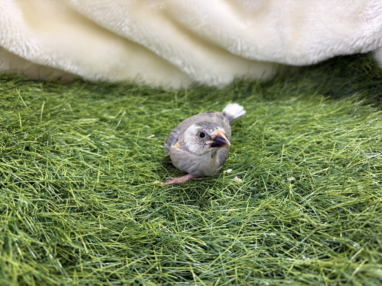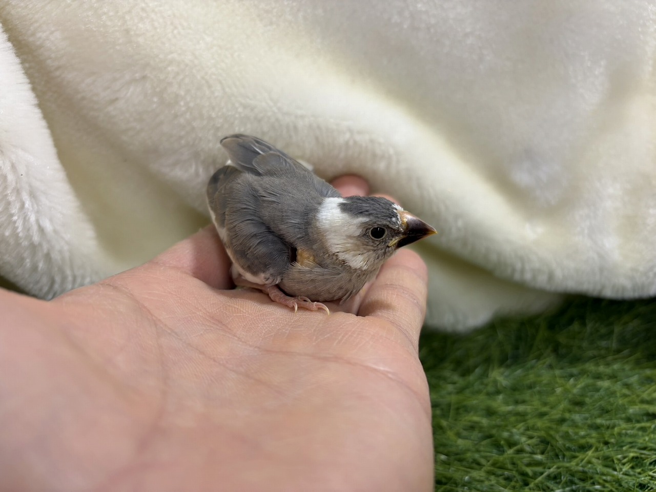 This baby Japanese Java Sparrow fits perfectly in the palm of your hand. Its soft feather color and round eyes are adorable, and just looking back at it makes your heart melt. It's such a soothing bird ❤️