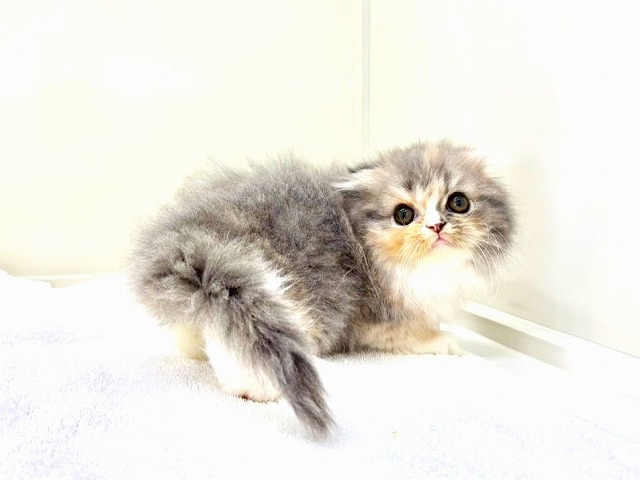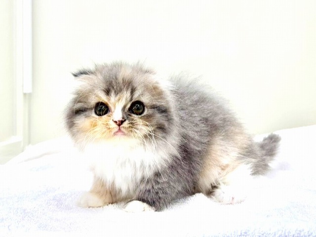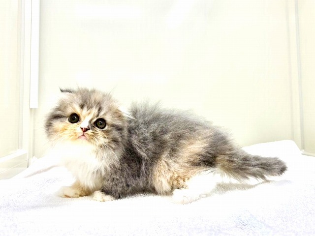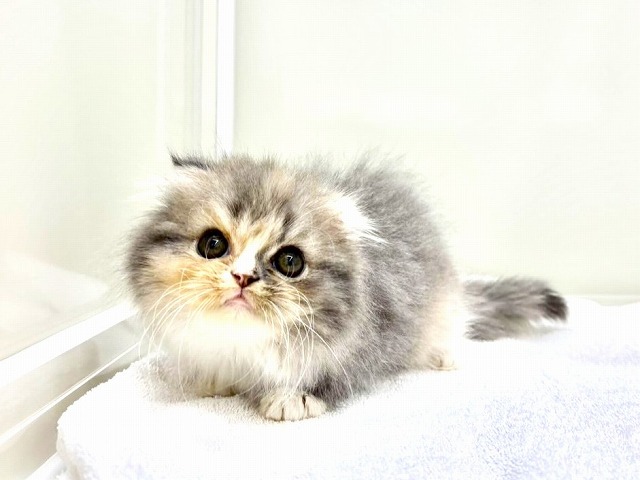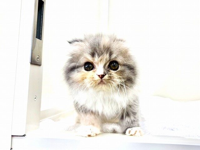 A Scottish Fold girl who looks like a **little dilute calico fairy** has joined our group (´꒳`)♡