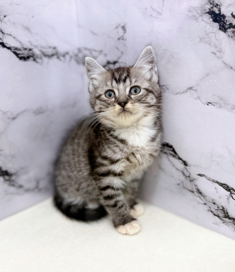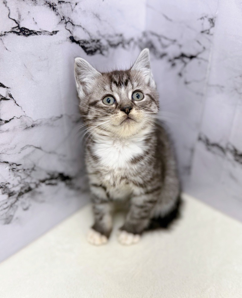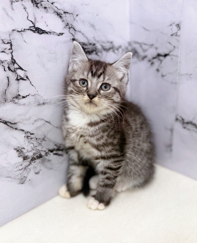 Coat color: Silver Tabby & White