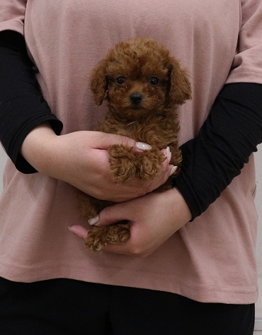 Introducing this popular male toy poodle, known for his soft, curly coat and intelligent, friendly personality.