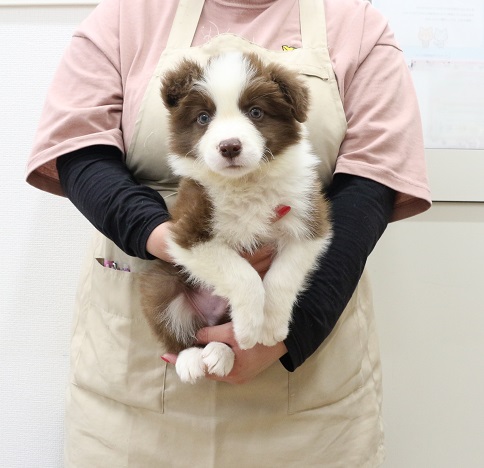 A gentle chocolate and white color scheme ✨ A Border Collie with intelligence and energy is his charm