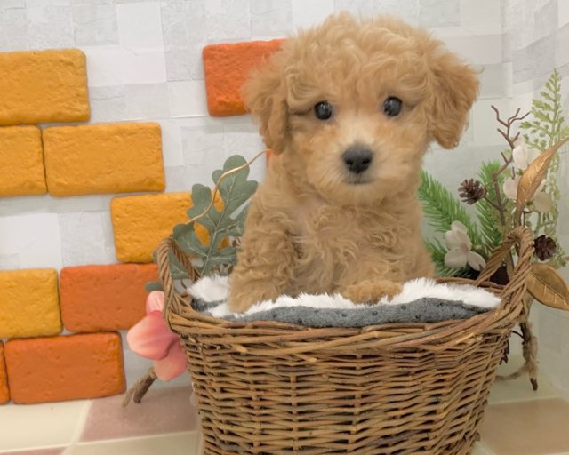 Mixed breed dog (Father: Pekingese x Mother: Toy Poodle) (Apricot)